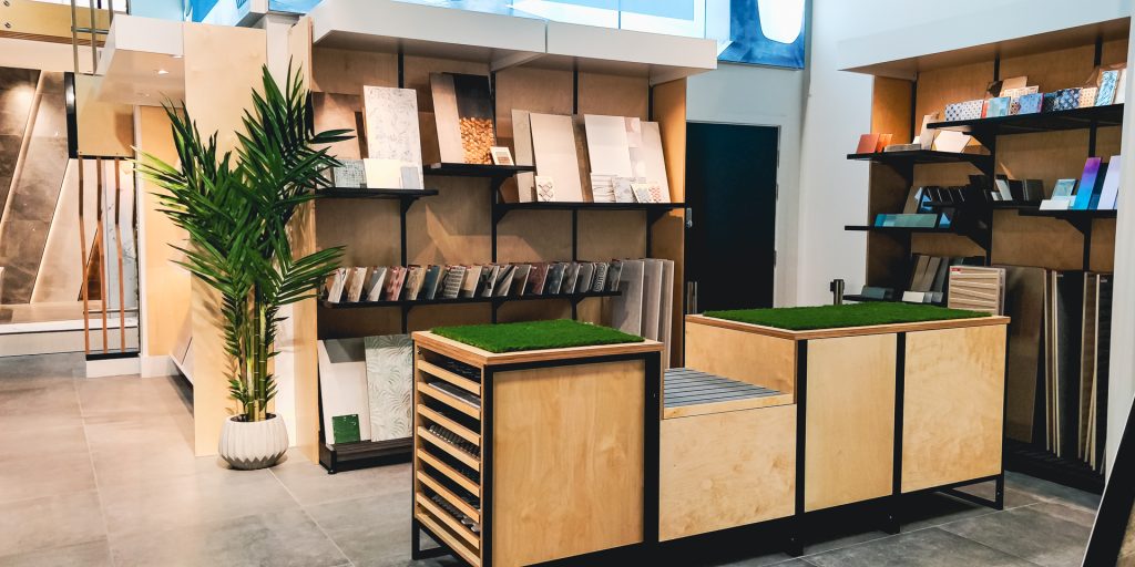 These displays allow you to showcase large or custom tiles vertically, offering a creative way to maximise product exposure while keeping floor space clear – an approach that is vital when trying to maintain a good sense of flow in any showroom.