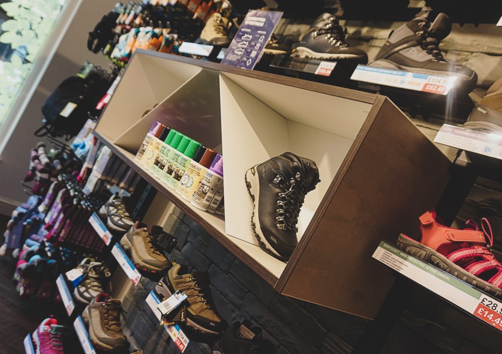 For example, our work for Trespass’s Windsor store showcases the impact that can be achieved by presenting items at varied display heights on a feature wall.